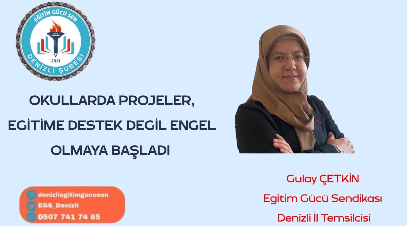 Okullarda uygulanan projelere Eğitim Gücü Sen Temsilcisi Gülay Çetkin, öğretmen, öğrenci ve okul idarelerinin iş yükü altında boğulduğunu, bu işin adeta ders işlemenin de önüne geçtiğini söyleyerek sert tepki gösterdi. Çetkin; “Okullarımız öyle bir hale geldi ki her öğretmenin birden fazla proje görevi, okulun her duvarı proje köşesi, her gün bir ya da birden fazla etkinlikle abartılmış bir hareketliliğe maruz bırakıldı. Tübitak, Teknofest gibi Bakanlık projelerinin yanı sıra son dönemlerde yerel, il-ilçe bazında projeler de okullarımıza bir yük olarak yürtülmektedir.